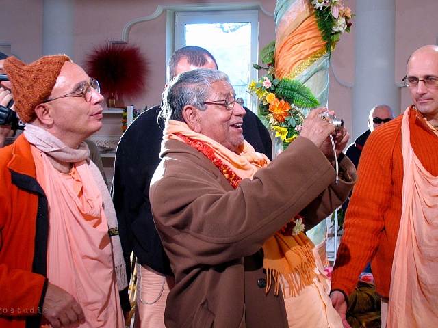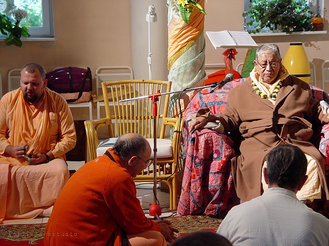 Я очень счастлив приехать сюда по милости наших учителей, в Россию, потому что именно отсюда я чувствую энергию, поток энтузиазма проповеди сознания Кришны. Вы все знаете, что я уже в пожилом возрасте и мое здоровье не самое лучшее, но тем не менее это не останавливает меня от проповеднической миссии и личной проповеди.